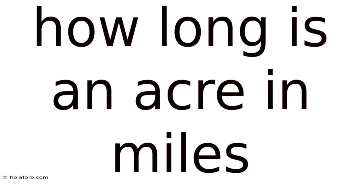 While the question "how long is an acre in miles" cannot be answered directly because acres measure area rather than length, we now understand that one acre equals 1/640 of a square mile. This relationship provides the key to understanding land area in terms that involve miles No workaround needed..