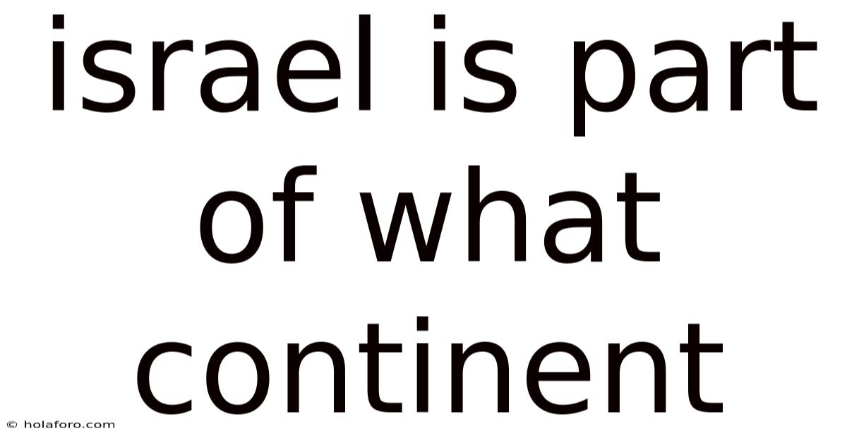 Simply put, Israel is unequivocally part of the Asian continent, specifically within the Middle East subregion. Its geographical location