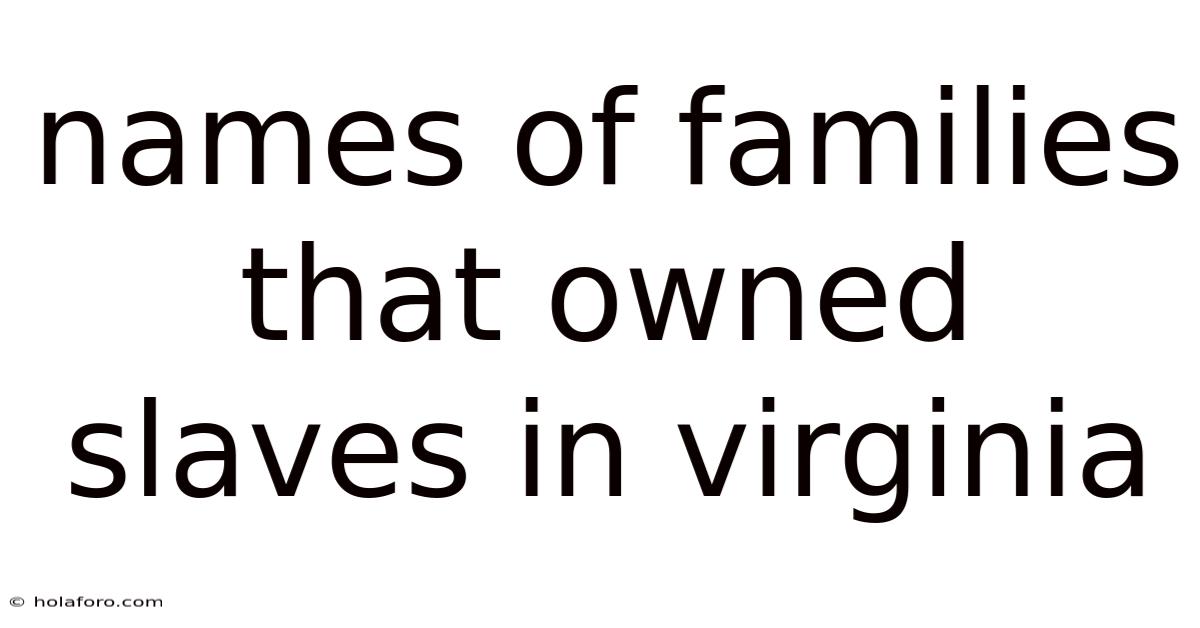 Prominent Families That Owned Slaves in Virginia