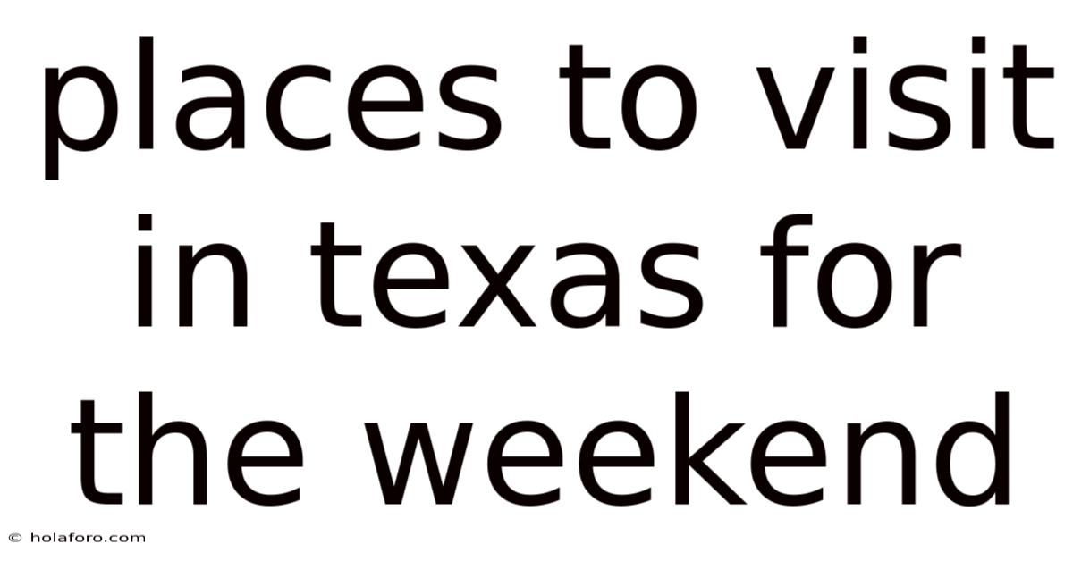 Introduction For Texans and visitors alike, the allure of a weekend escape is undeniable. The state's sheer size and diversity mean you can easily find a destination that feels worlds away from your daily routine. From the iconic live music scene of Austin to the historic missions of San Antonio and the world-class museums of Houston, Texas provides a rich tapestry of experiences. This article explores the top places to visit in Texas for the weekend, focusing on destinations easily accessible for a quick, rewarding trip. Prepare to discover the unique charm and excitement waiting just a few hours' drive from major hubs And that's really what it comes down to..