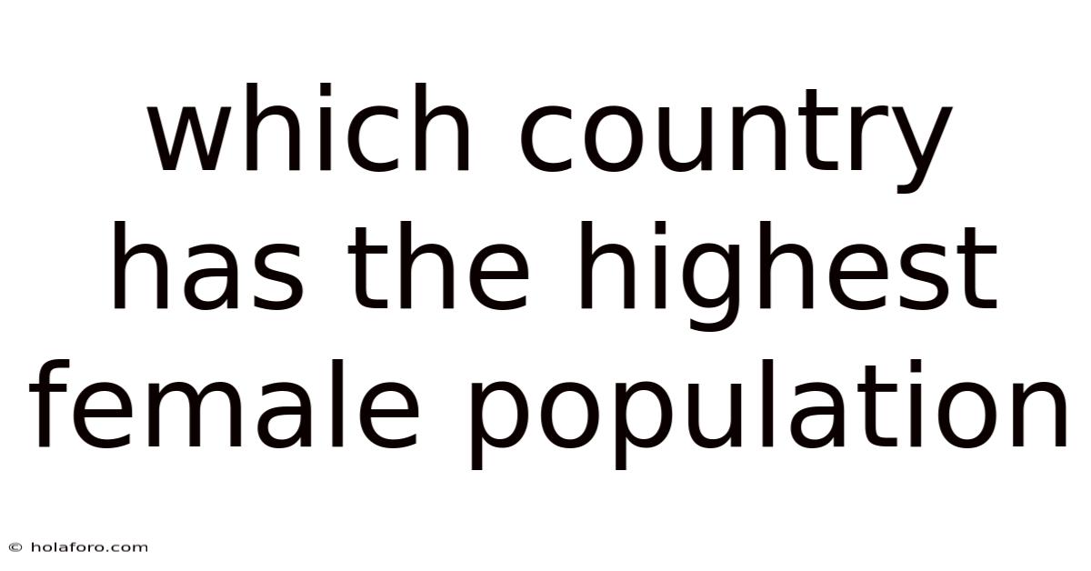Which Country Has The Highest Female Population